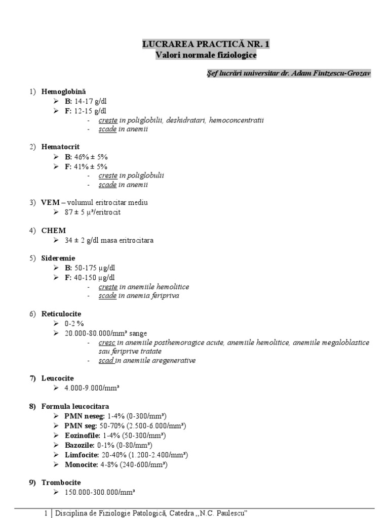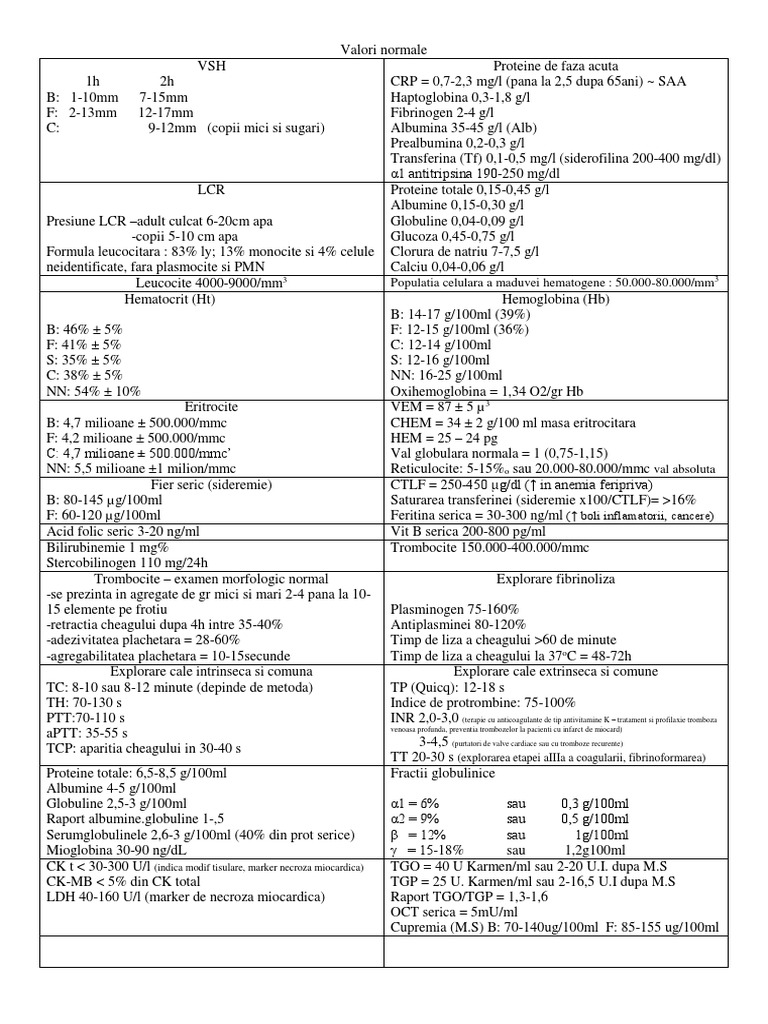 Valori Normale Fiziologice