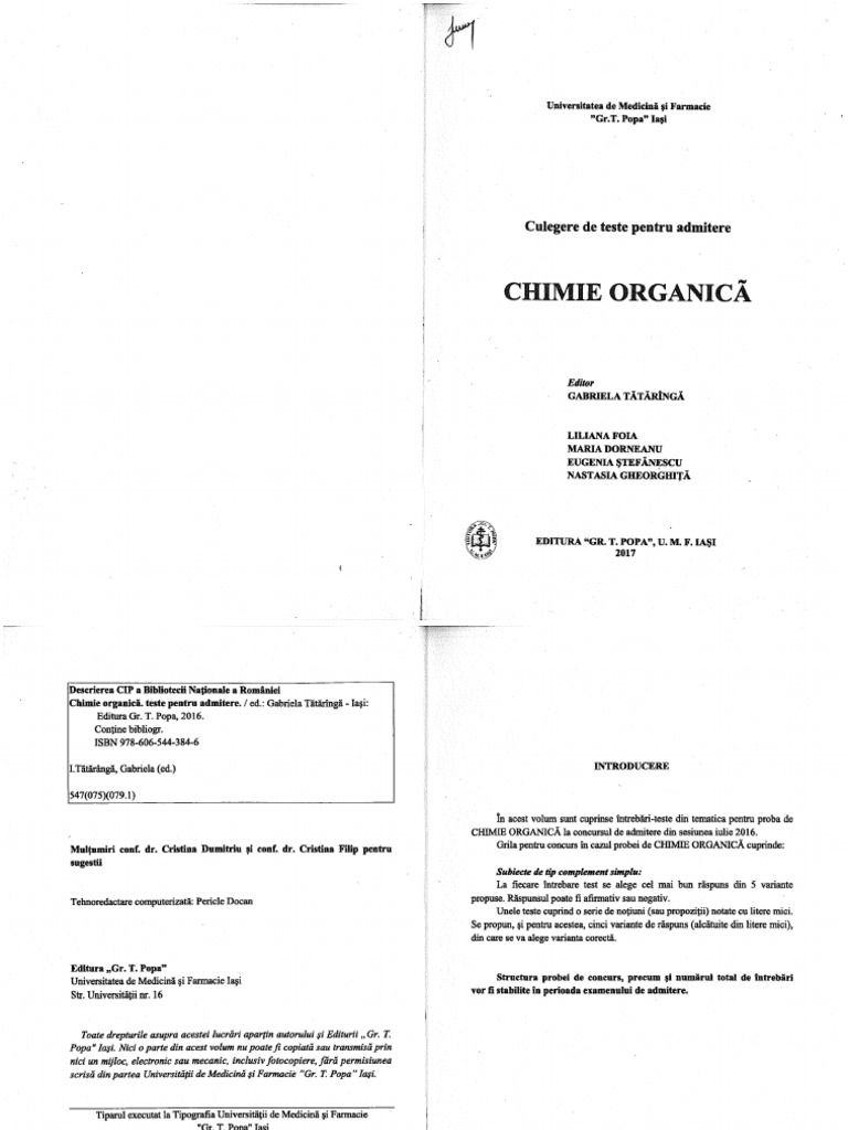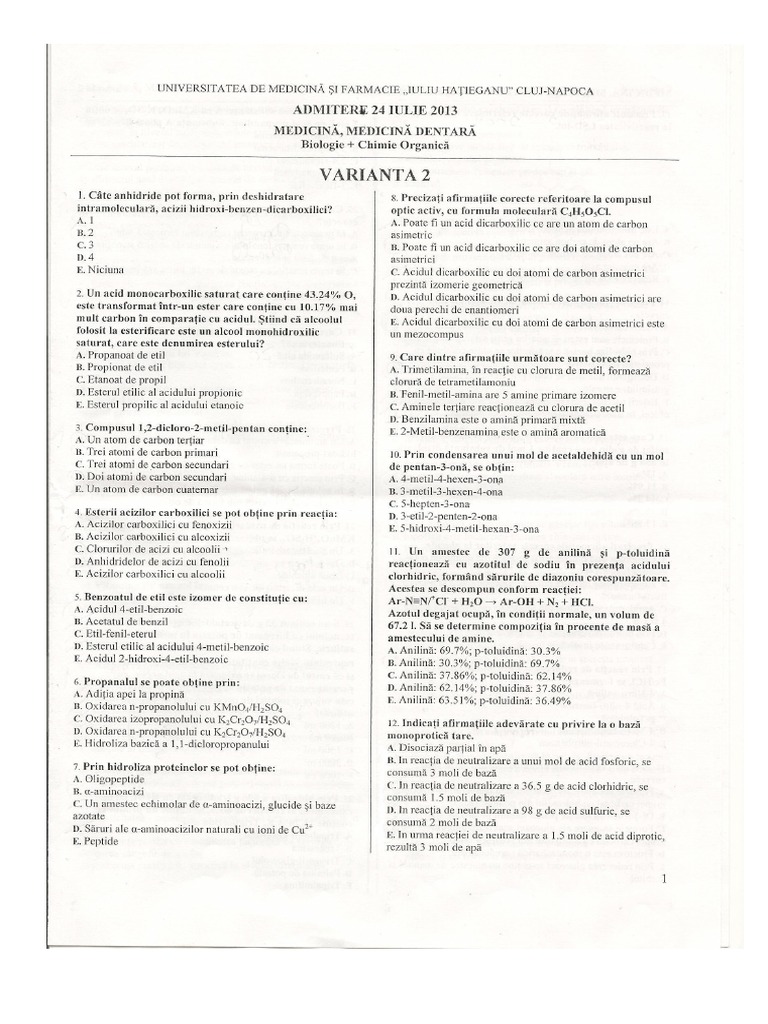 Teste Chimie Organica Admitere Iasi 2018