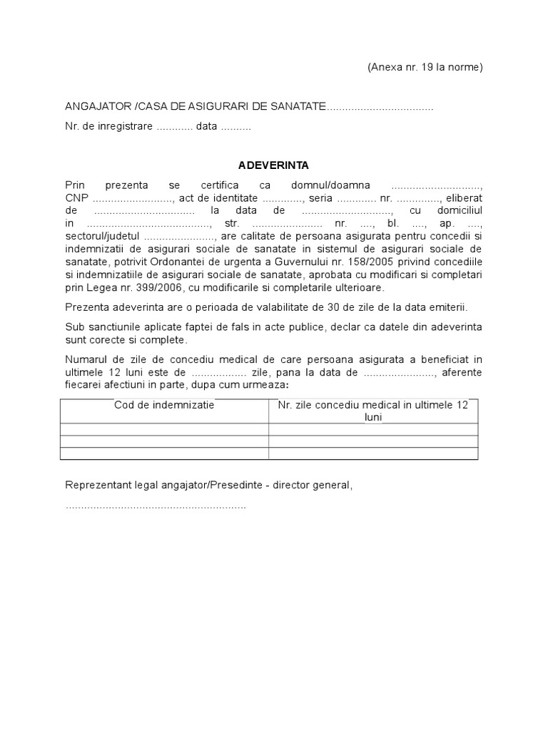 Anexa 19 Adeverinta Cu Numarul De Zile De Concediu Medical Pentru Salariat