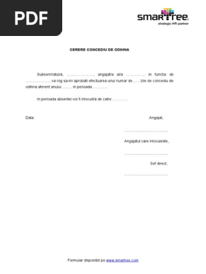 Descarcati gratuit cea mai buna varianta de statute procuri contracte imputerniciri cereri decizii autorizatii coduri legi ordonante 2015. User last modified by. Cerere pentru concediu de odihna.