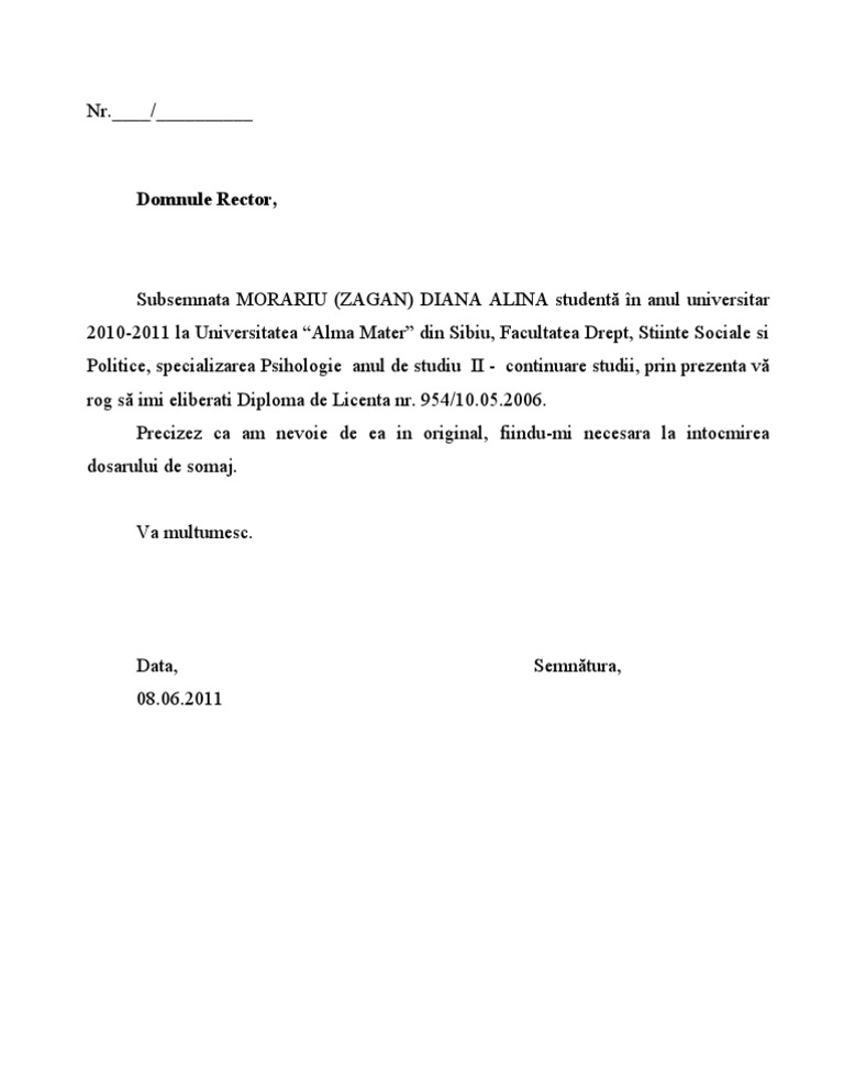 Model Cerere Eliberare Duplicat Diploma De Bacalaureat