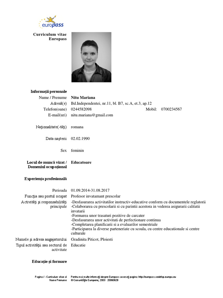 Exemple Cum Să Faci Un Cv Pentru Angajare Europass In Romană și Engleză