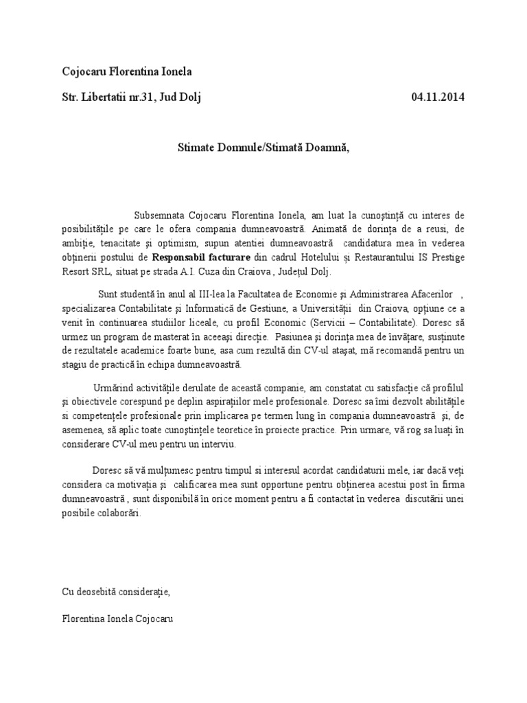 Modele De Scrisoare De Intentie In Limba Engleza Internship Motivation