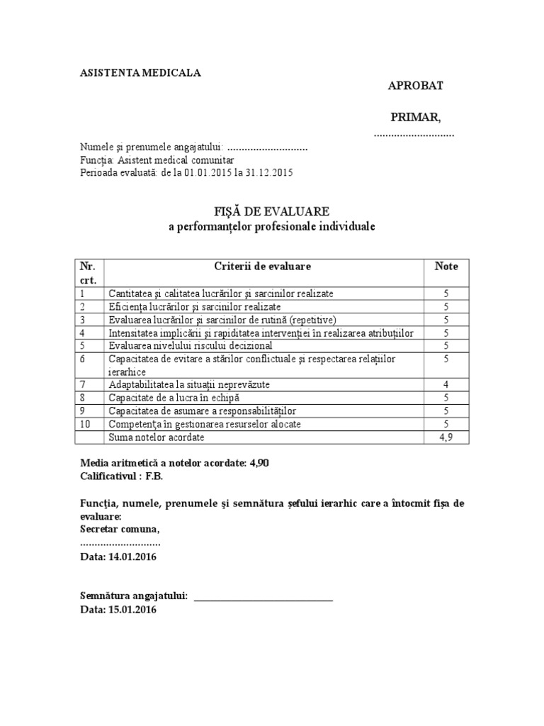 Fisa De Evaluare A Personalului Didactic 2019 Criterii Si Punctaje
