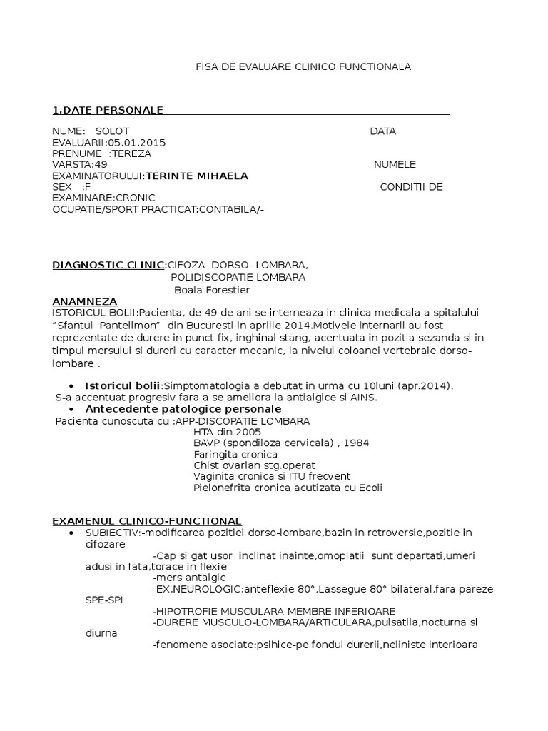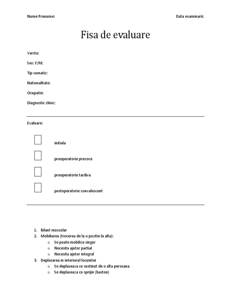 Fise Evaluare Kinetoterapie Scurta Si Lunga