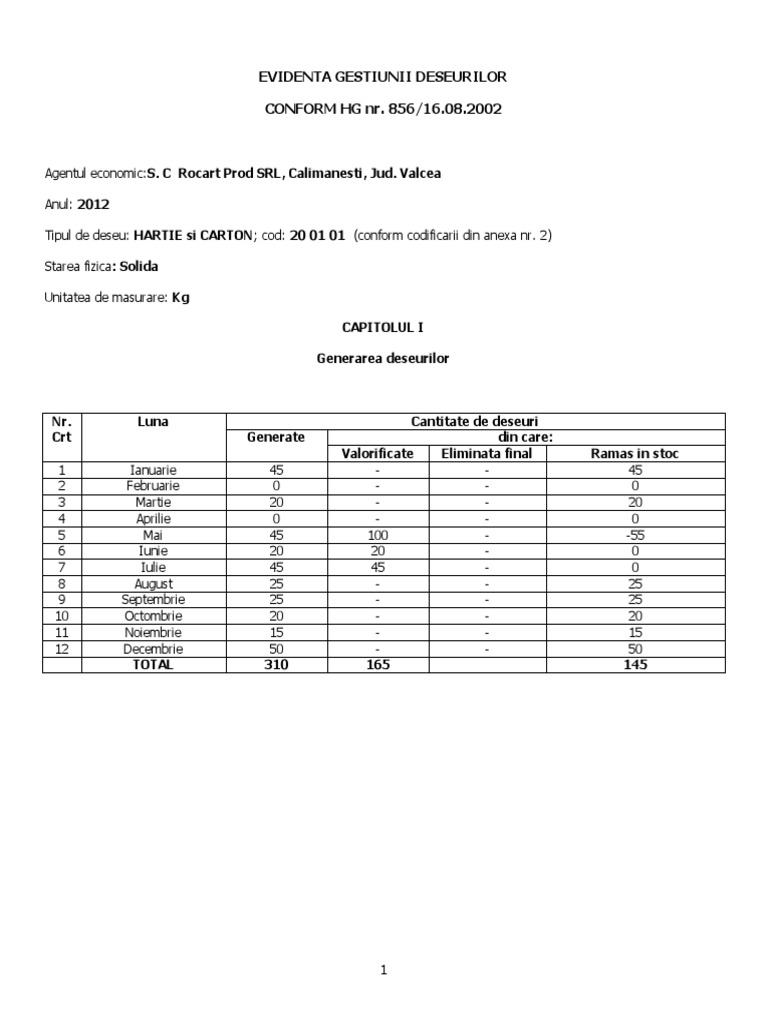 Model raportare anuala deseuri. Persoana fizica autorizata sau persoana juridica care cu titlu profesional proiecteaza produce prelucreaza trateaza vinde ori importa produse. Braila b dul independentei nr 14 bl. Acest lucru este posibil pentru ca legea 211 2011 precum si om 192 2014 sunt ambigue in definirea clara a producatorului de deseuri. In cazul in care doriti sa transmiteti o sesizare mentionam ca aceasta va fi inregistrata cu respectarea prevederilor og nr.