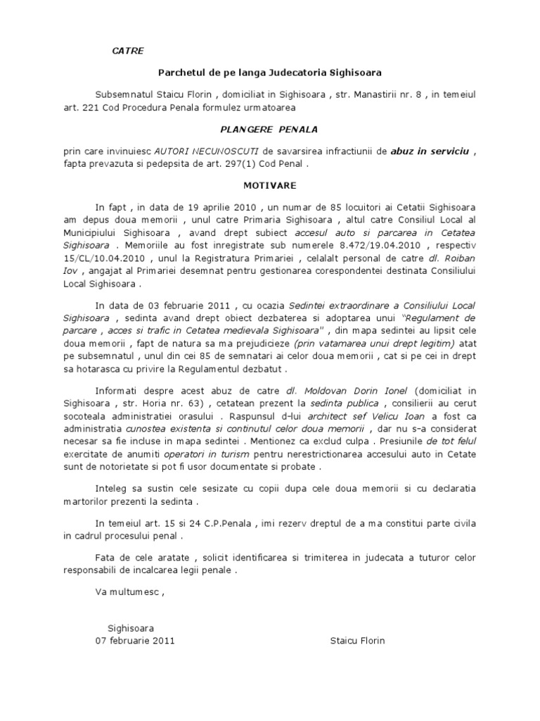Model reclamatie catre primarie. Adaugati o sesizare stimati cetateni prin intermediul site ului www domnuleprimar ro aveti posibilitatea sa comunicati direct primarului din orasul sectorul dumneavoastra problemele personale sau de interes comunitar va rugam sa completati formularul de mai jos si sa redactati cat mai concis mesajul dumneavoastra. Desi majoritatea se tem ca de tamaie sa primeasca o scrisoare de reclamatie aceeasi majoritate n are habar cum sa redacteze una in cazul in care imprejurarile o cer. La primaria din sibiu la fel. Cele mai deschise catre proiect au fost primaria din mangalia primaria din targoviste acolo managerul orasului a auzit de proiect a venit el catre noi si a spus ca vor sa implementeze un astfel de sistem.