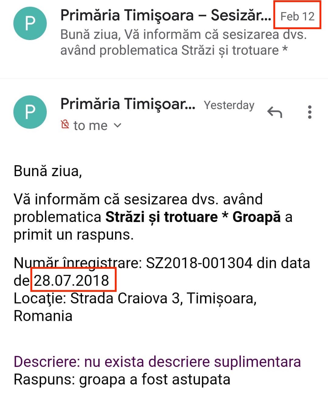 De inregistrare cereti sa vi se raspunda cu privire la cerere. De telefon al primariei respective pe internet cereti la relatii cu publicul sau cereri petitii sesizari cu nr. De cele mai multe ori vor utiliza aceleasi expresii sforaitoare care ii enervasera in scrisorile de reclamatie pe care le au primit la randul lor. O primarie care deja are un astfel de sistem implementat este primaria cluj.