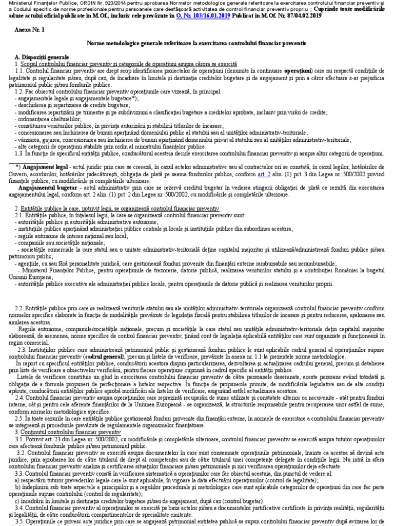 Omfp 923 2014 Normele Privind Exercitarea Controlului Financiar Preventiv Si Codul Specific De Norme Profesionale Cfnet Codfiscal Net Finante Taxe