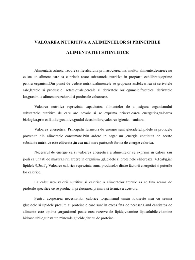Valoarea Nutritiva A Alimentelor Si Principiile Alimentatiei Stiintifice