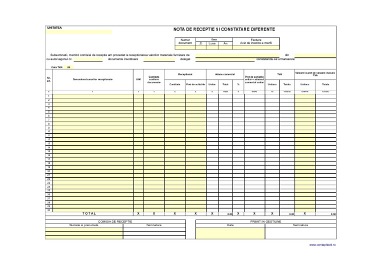 Nota De Receptie Si Constatare De Diferente Model Pdf