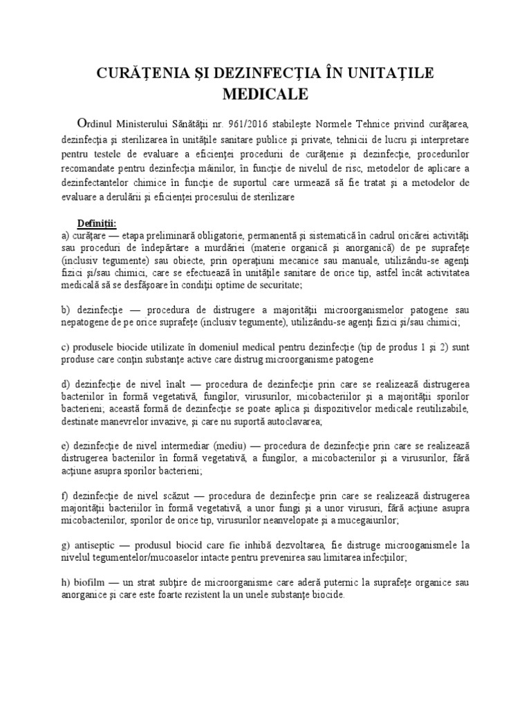 Ordinul Nr 961 2016 Pentru Aprobarea Normelor Tehnice Privind Curățarea Dezinfecția și Sterilizarea In Unitățile Sanitare Publice și Private Tehnicii De Lucru și Interpretare Pentru Testele De Evaluare A Eficienței Procedurii De Curățenie