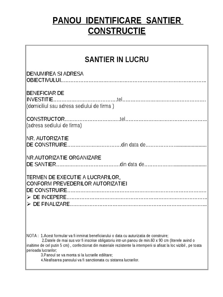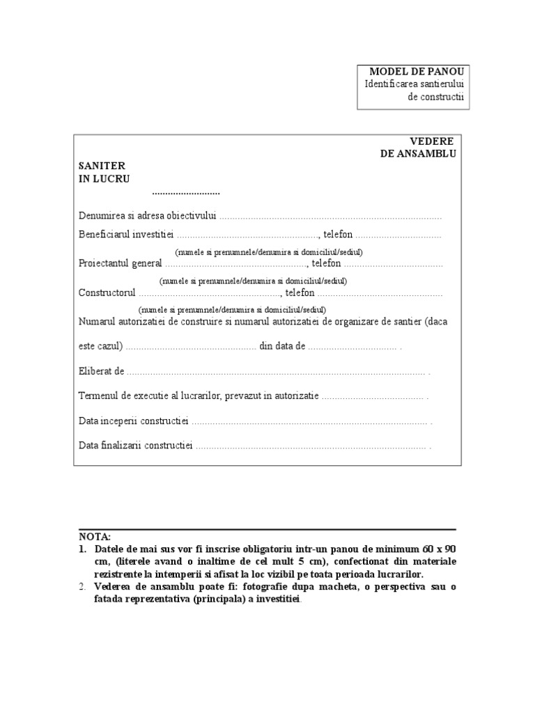 Model Panou Organizare De Santier Execuţie Lucrări De Construire Colegiul Tehnic Al Diriginţilor De Santier