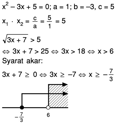 Jika 3x 7 Lebih Besar Dari Hasil Kali Akar Akar Persamaan Kuadrat X 3x 5 0 Tentukan Nilai X Mas Dayat