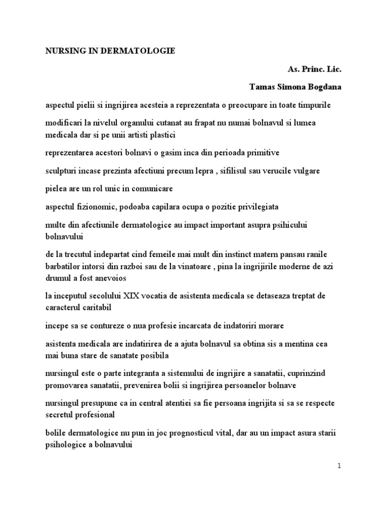 Plan De Ingrijire Dermatologie Pdf Document