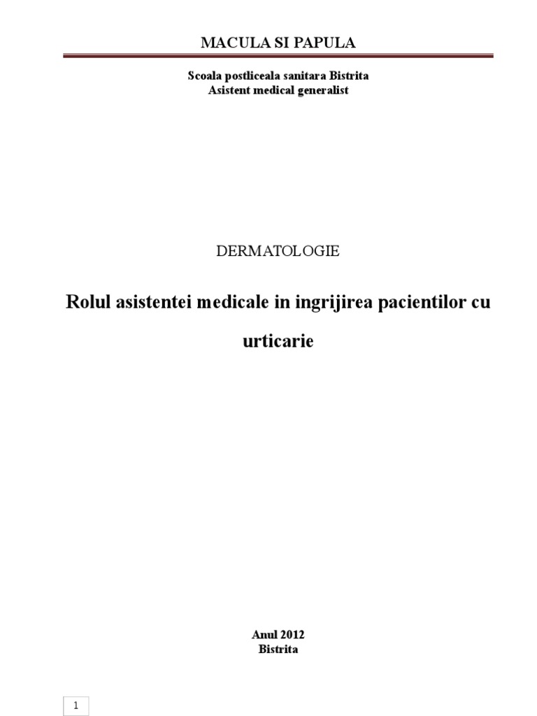 Rolul Asistentei Medicale In Ingrijirea Pacientilor Cu Urticarie