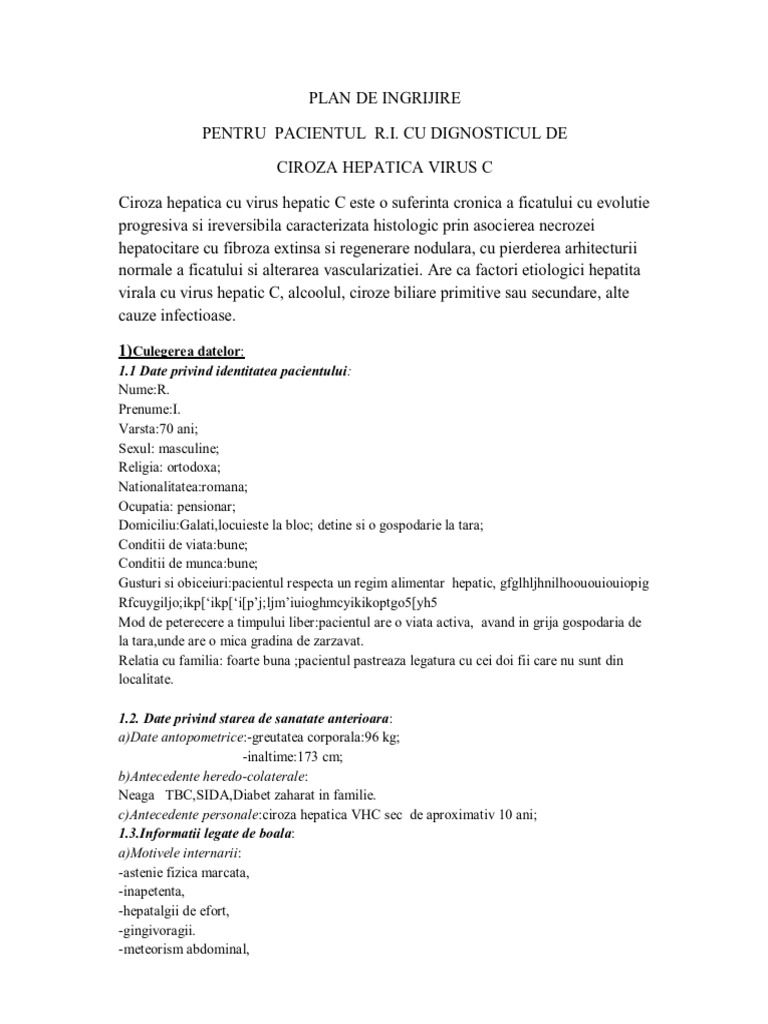 Plan De Ingrijire Ciroza Hepatica Virus C