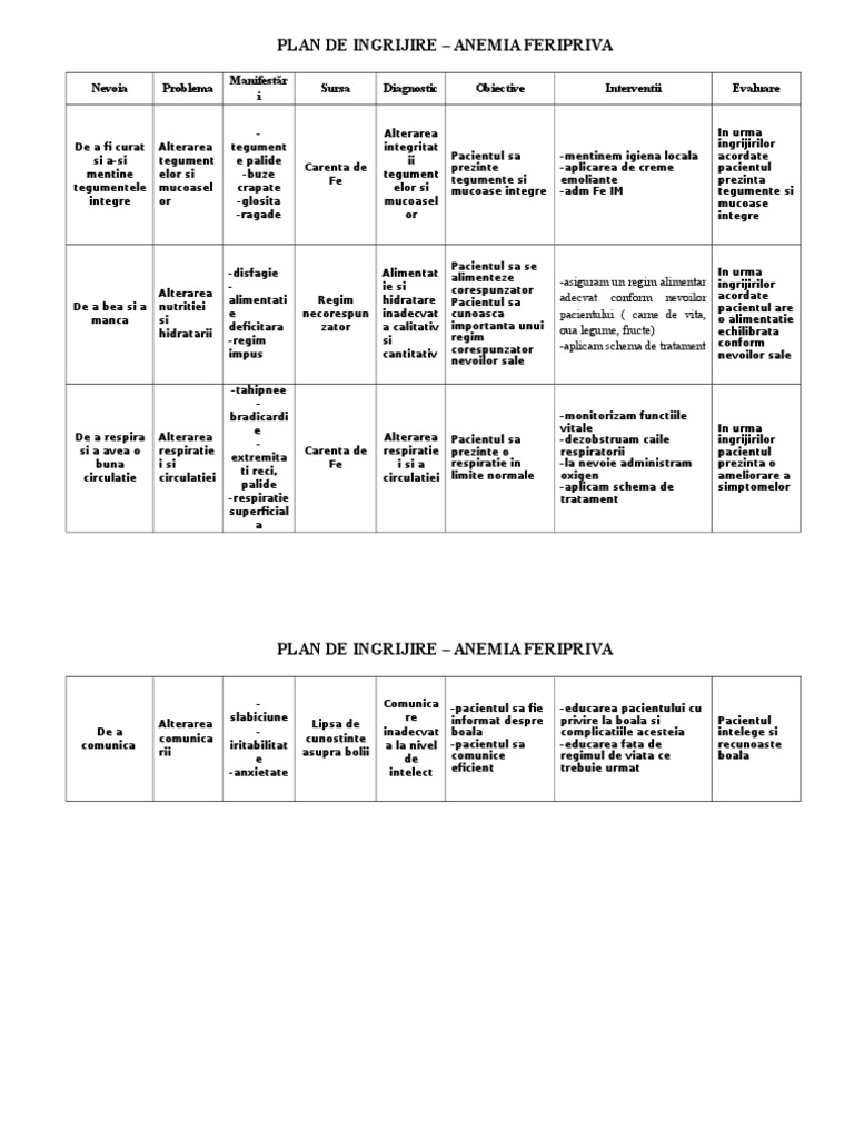 Plan De Ingrijire Anemia Feripriva