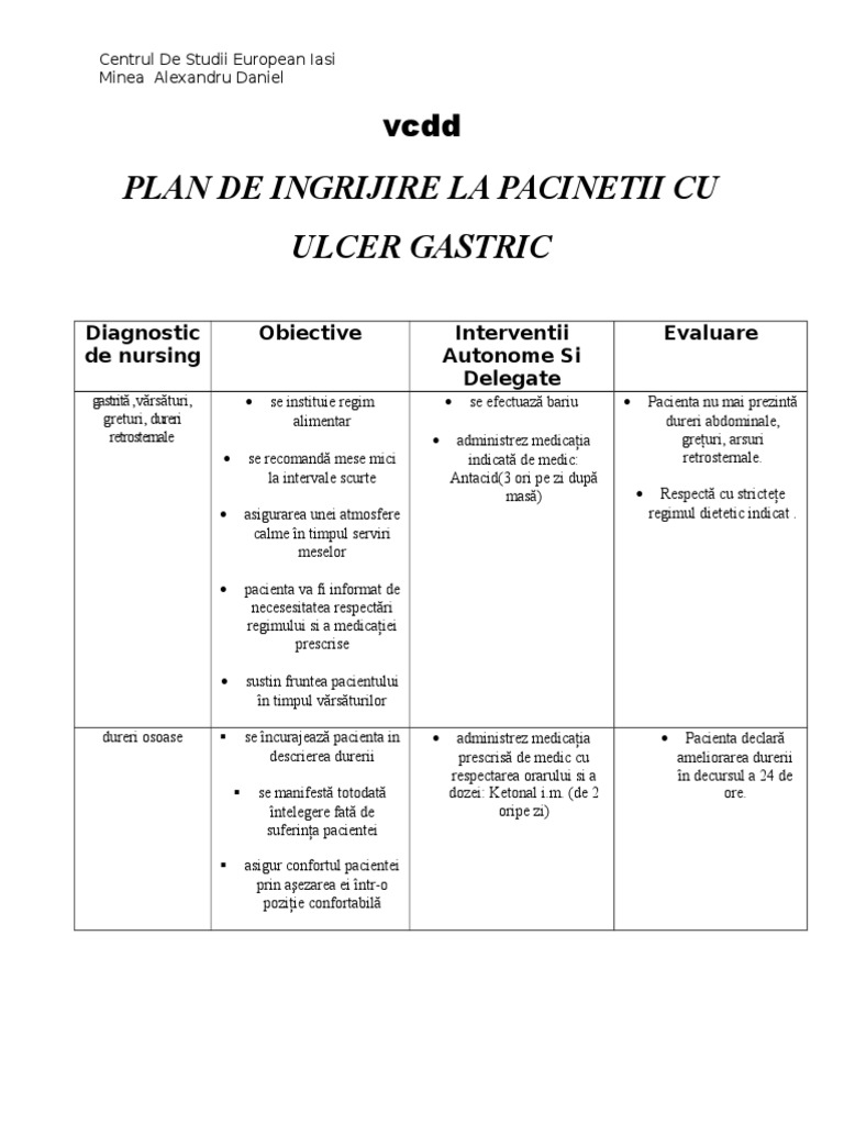 143662813 Plan De Ingrijire Ulcer Gastric