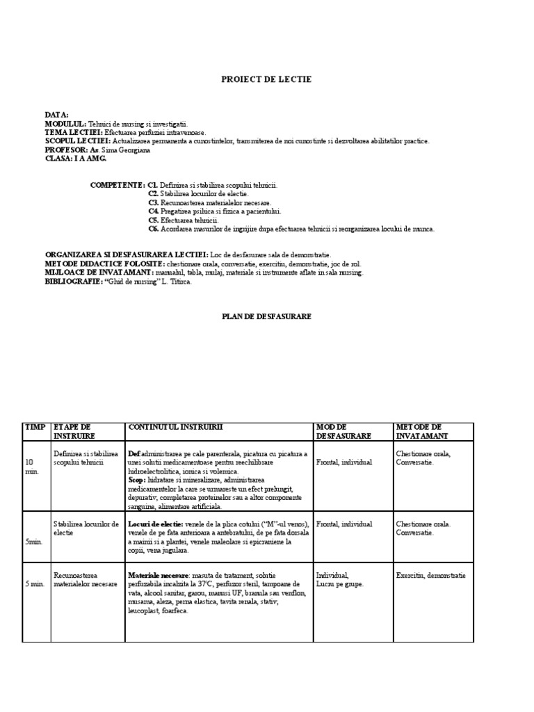 Plan Lectie Perfuzia