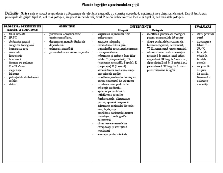 Plan De Ingrijire A Pacientului Cu Pneumonie Pneumococica Acuta Docx Document