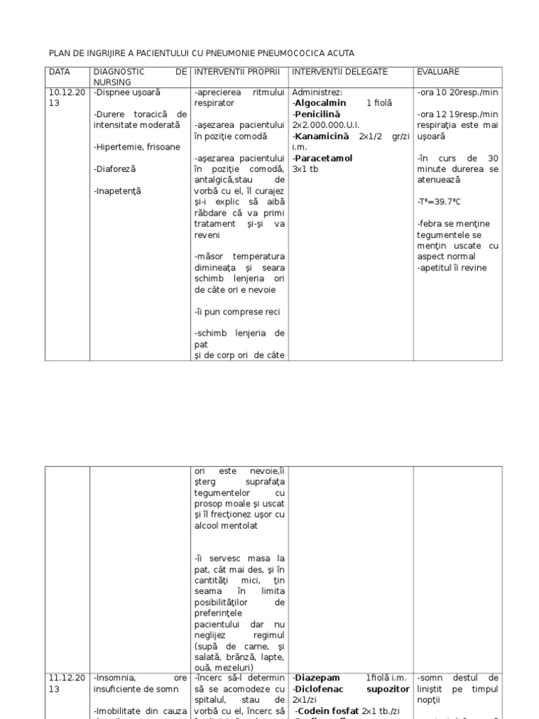 Plan De Ingrijire A Pacientului Cu Pneumonie Pneumococica Acuta