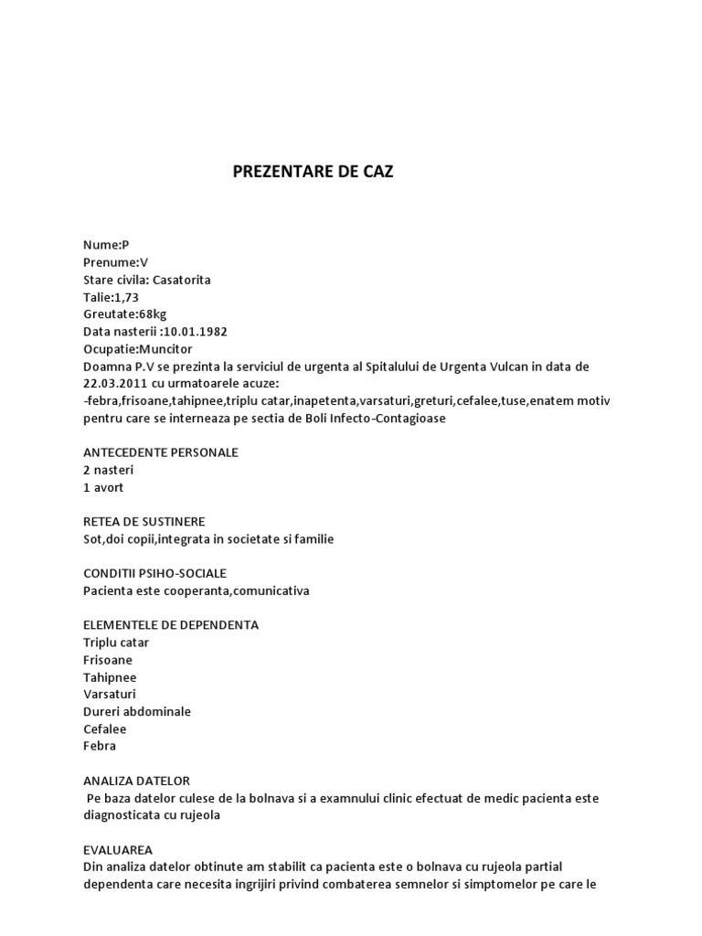 Prezentarea planurilor de ingrijire prezentarea cazului a prezentarea cazului b prezentarea cazului c. Iti recomandam sa te uiti bine pe extras cuprins si pe imaginile oferite iar daca este ceea ce ti trebuie pentru documentarea ta o poti descarca. Varicela în forma sa tipică poate înregistra un indice de contagiozitate de până la 95. Sursele pot elimina virusul prin secrețiile nazofaringiene şi lichidul din vezicule.
