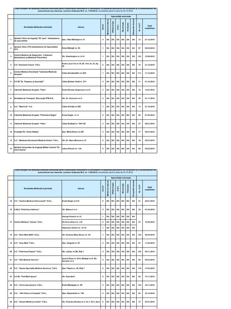 Permise Auto Bucuresti Lista Cabinete Medicale