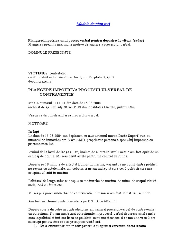 Proces Verbal De Constatare A Contraventiei Model Completat