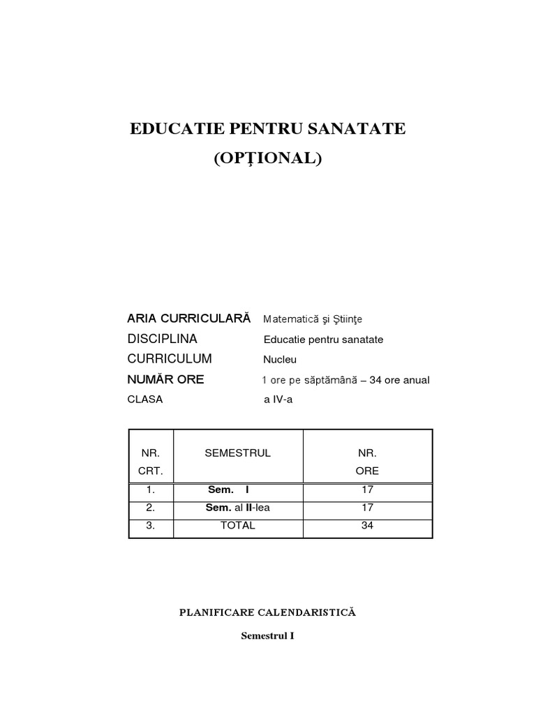 Planificare Educatie Pentru Sanatate Pdf Document